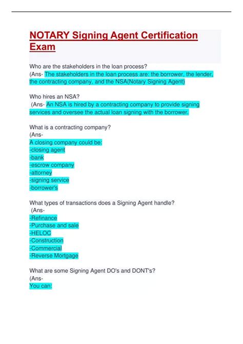 Free PDF NOTARY SIGNING AGENT EXAM ANSWERS Library Binding